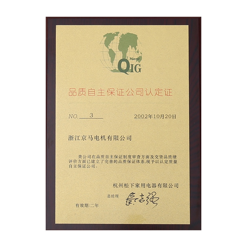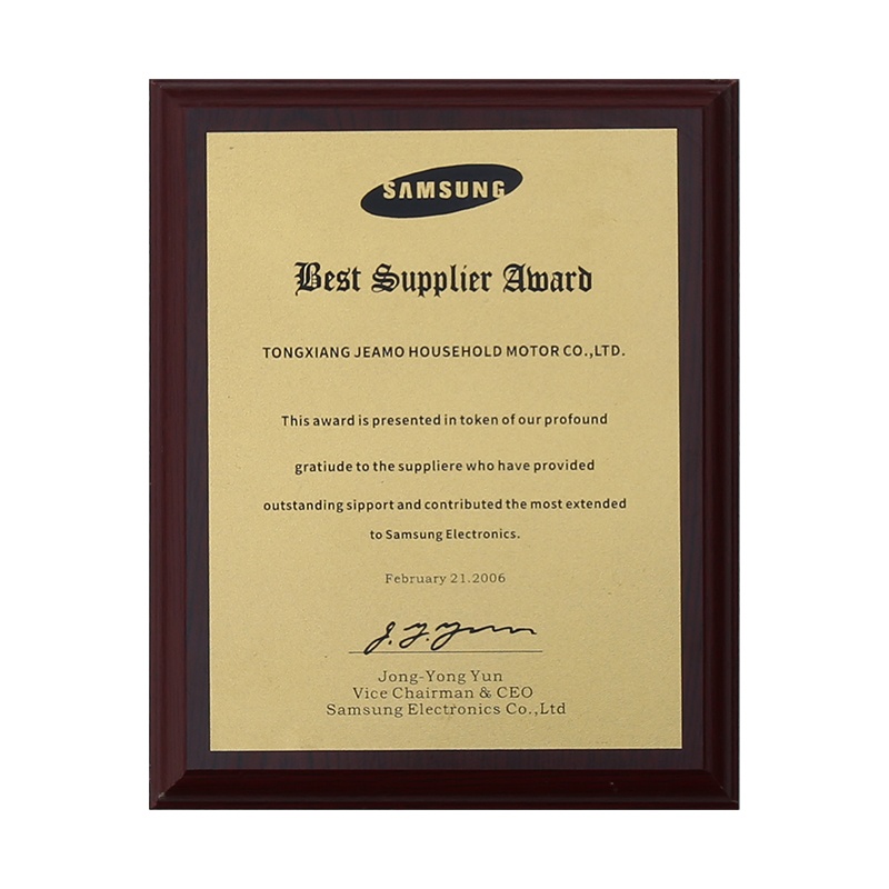 Jeamo home motors were certified as Inspection-free products by the General Administration of Quality Supervision, Inspection and Quarantine of the PRC. In the same year, Jeamo Electric Motor was certified as a National Torch Plan Key High & New Technology Enterprise.